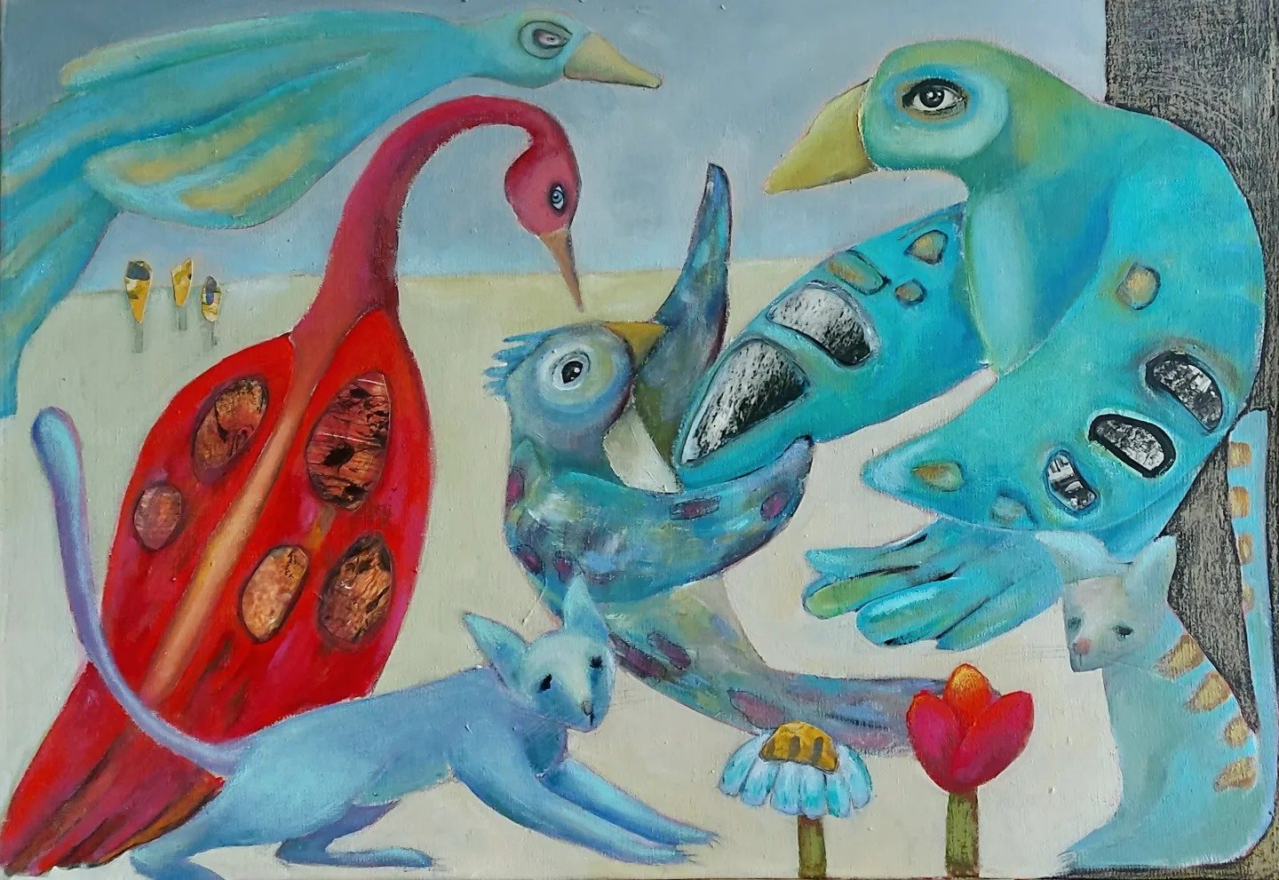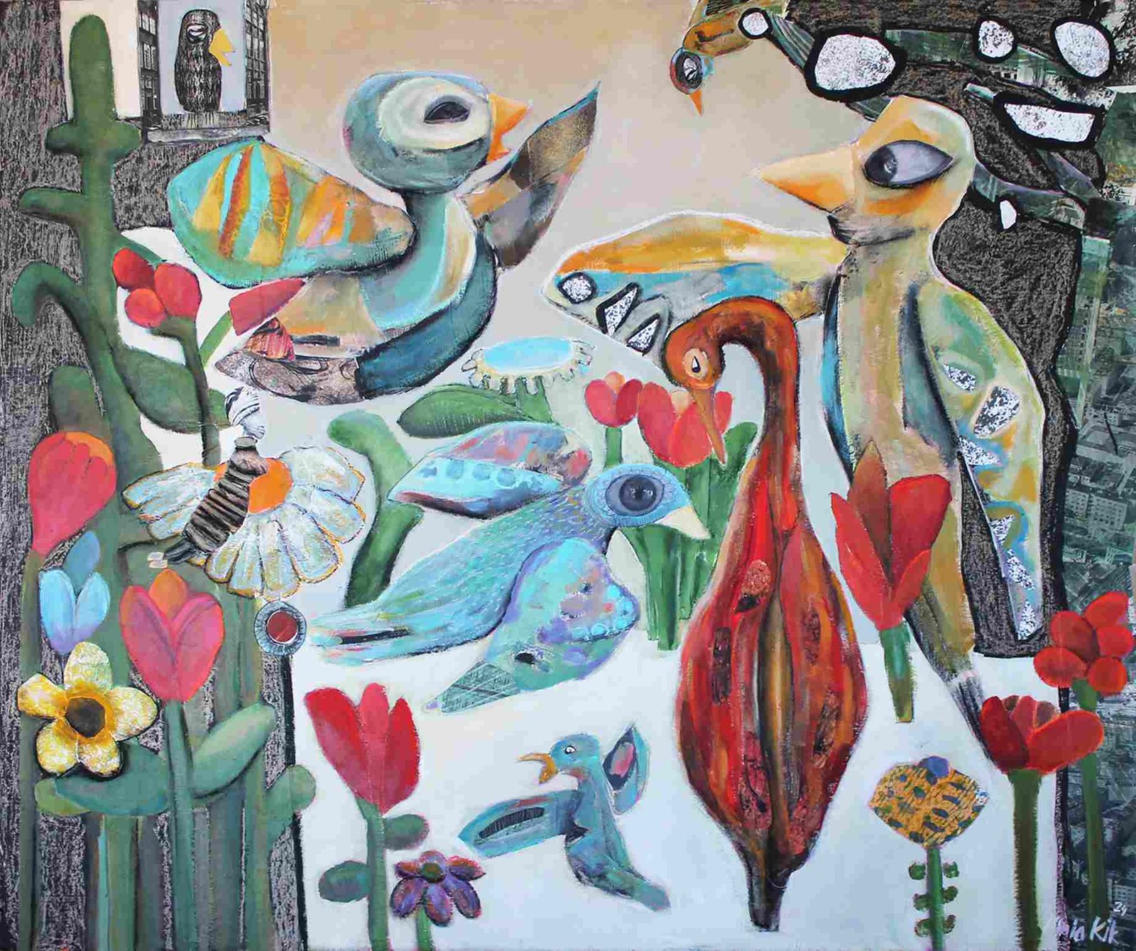 BIRDY 26cm x 40cm mixed media on the gesso coated card 72