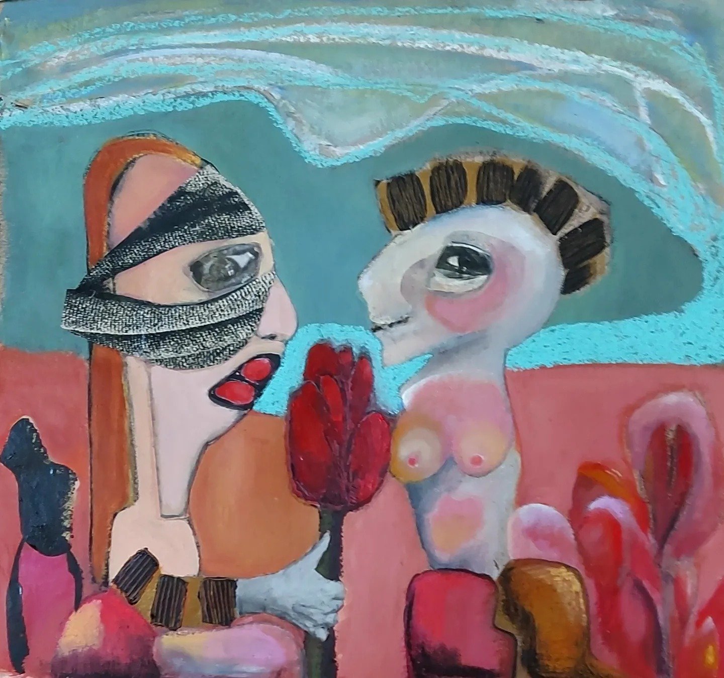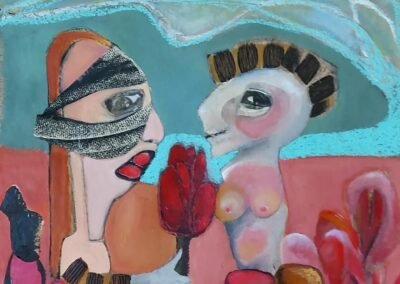 CHRZASZCZEWSKA KINGA Woman in the red room. 30cm21cm mixed media on handmade paper