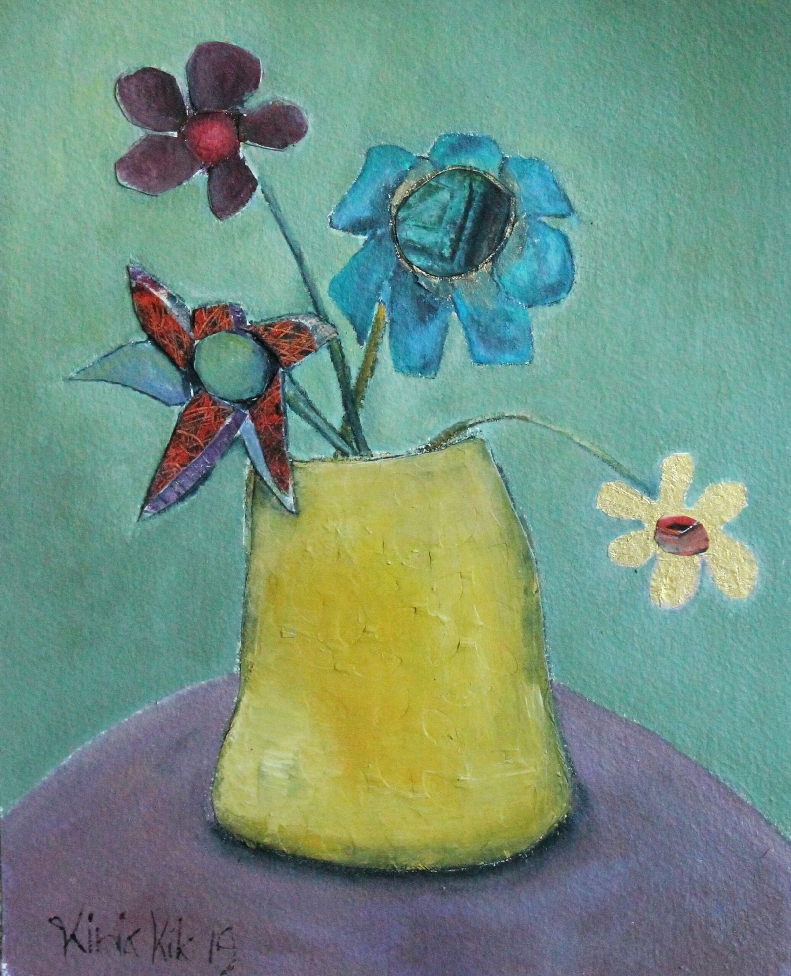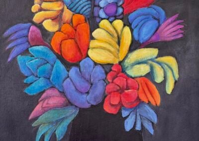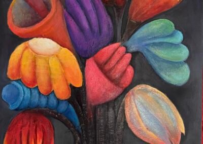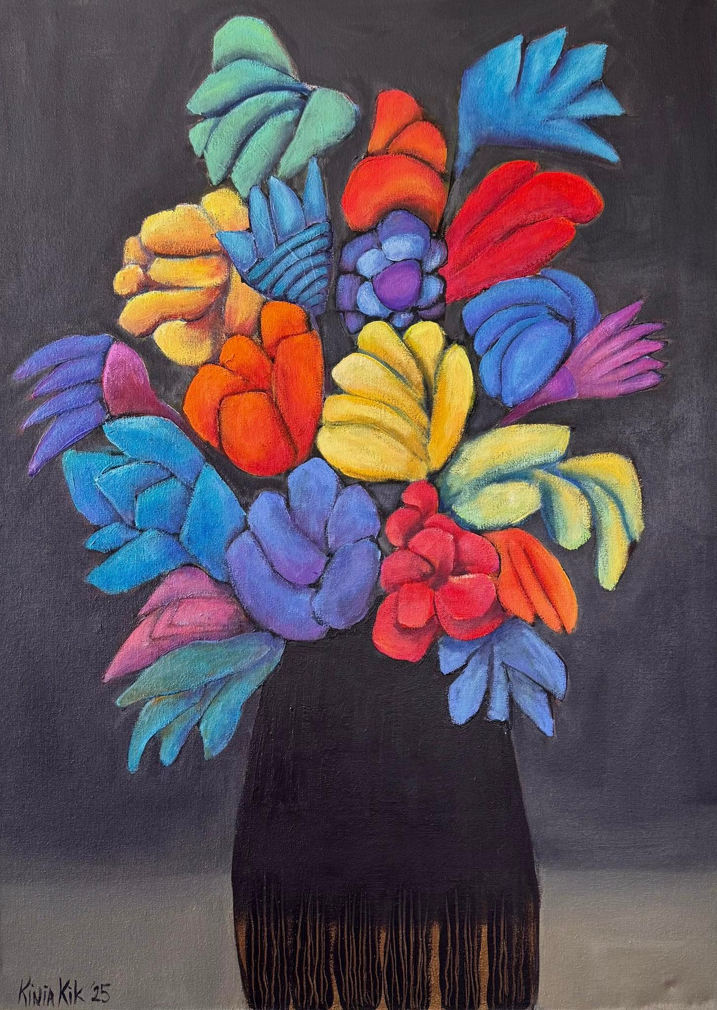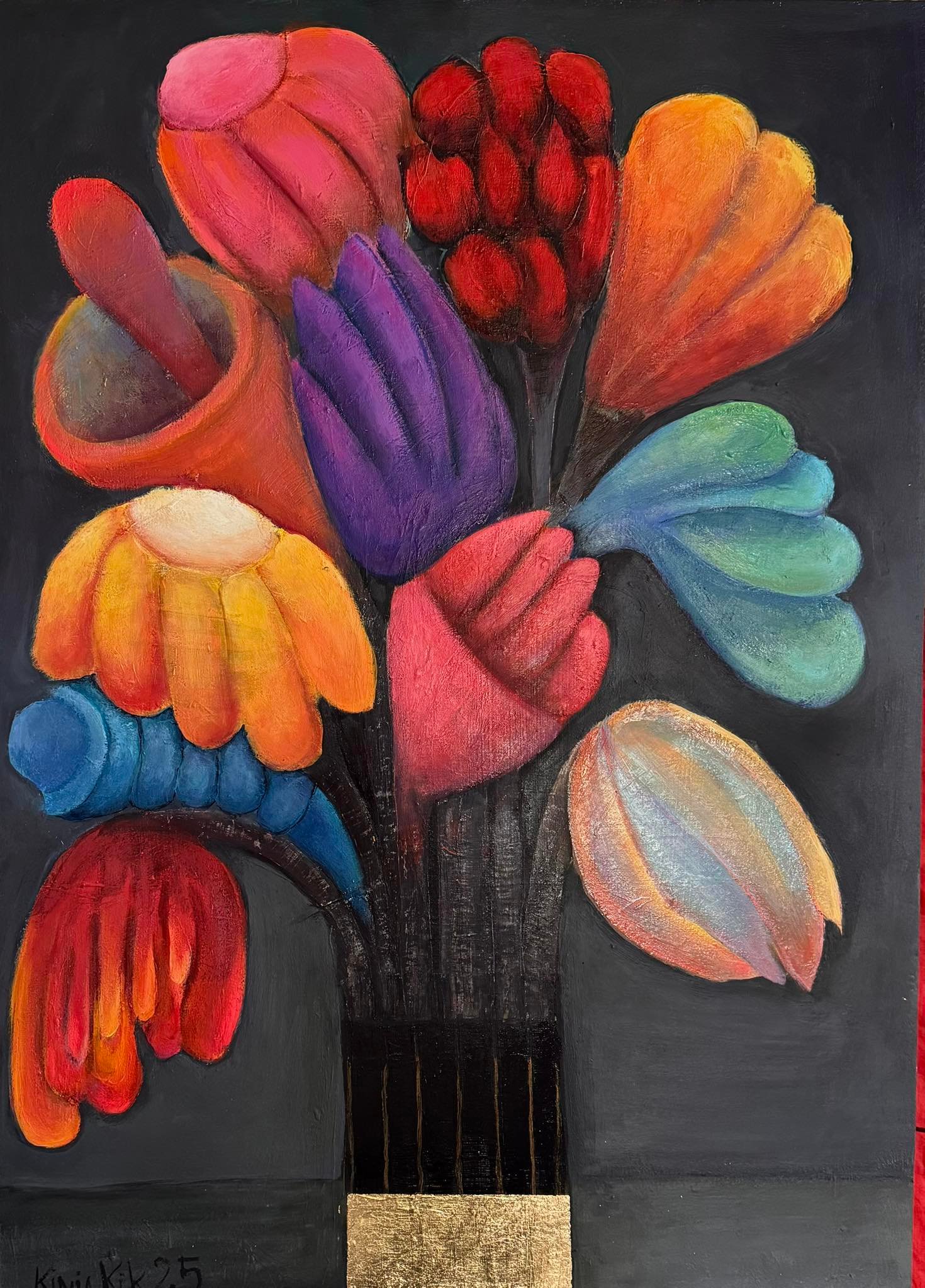 KWIATY WYCIĘTE Z MROKU technika mieszana płótnie 50cm x 70cm 2025